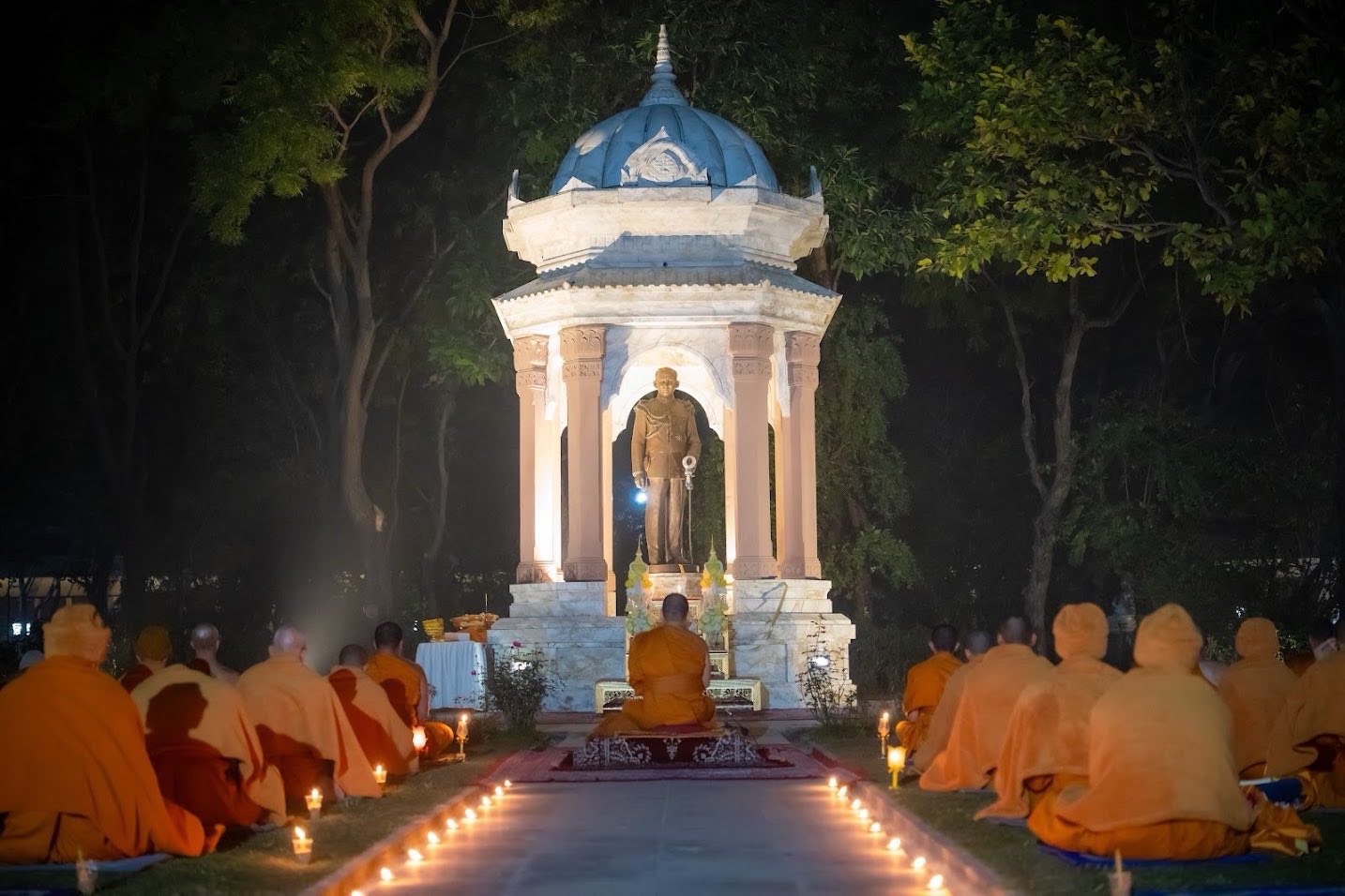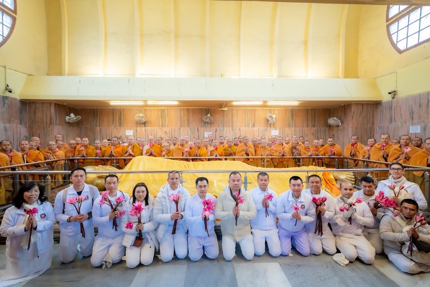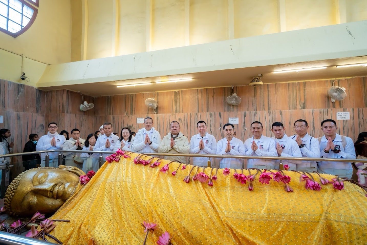 มหาภูมิพลอดุลยเดชมหาราช บรมนาถบพิตร ณ วัดไทยกุสินาราเฉลิมราชย์ เมืองกุสินารา รัฐอุตตรประเทศสาธารณรัฐอินเดีย และเวียนประทักษิณรอบเจดีย์ เพื่อความเป็นสิริมงคลและความสงบทางใจ