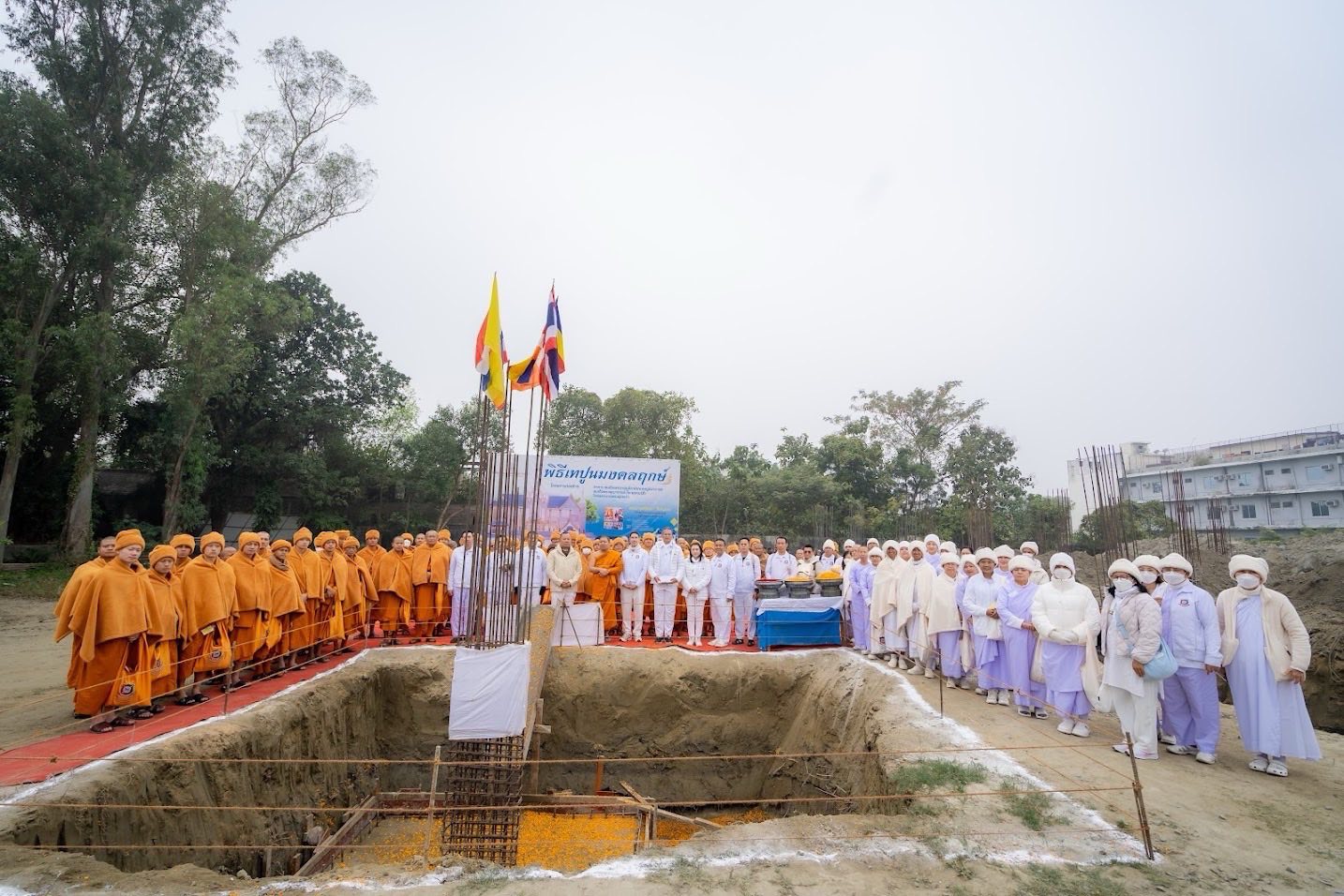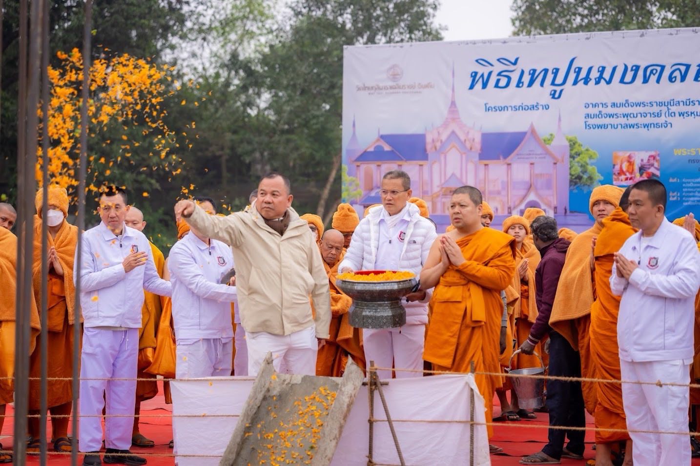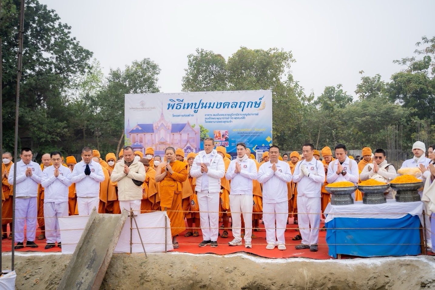 พิธีเทปูนมงคลฤกษ์ โรงพยาบาลพระพุทธเจ้า เชื่อว่าเป็นการเริ่มต้นที่เป็นสิริมงคล วางรากฐานแห่งเมตตา ความมั่นคง และความสำเร็จของสถานพยาบาลเพื่อประโยชน์สุขของประชาชน