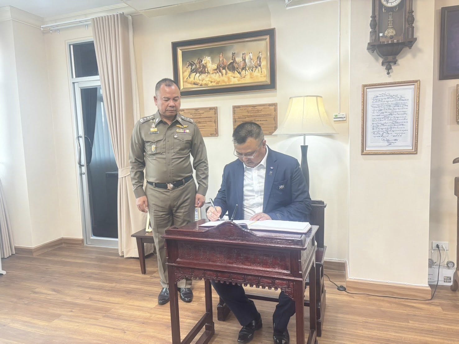 กราบหลวงพ่อนาค ณ ห้องทำงาน ผบช.รร.นรต. ชั้น 3 อาคาร บช.รร.นรต. และลงสมุดตรวจเยี่ยมโรงเรียนนายร้อยตำรวจ