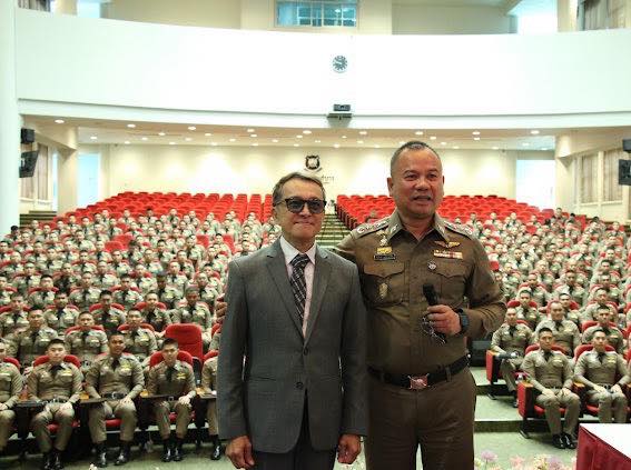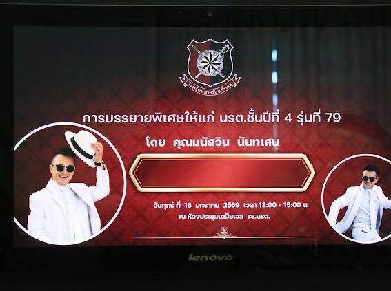 ภาพกิจกรรม/ประชุม/สัมมนา คุณมนัสวิน นันทเสน (คุณติ๊ก ชีโร่) เจ้าของบริษัทมาจอยกัน จำกัด ได้ให้เกียรติมาเป็นวิทยากรบรรยายพิเศษให้แก่ นรต. ชั้นปีที่ 4 รุ่นที่ 79 จำนวน 280 นาย ในหัวข้อ : สุนทรียะในการดำเนินชีวิต 2 สัปดาห์ ที่ผ่านมา วันศุกร์ที่ 16 มกราคม 2569 เวลา 13.30 น.-16.30 น. คุณมนัสวิน นันทเสน (คุณติ๊ก ชีโร่) เจ้าของบริษัทมาจอยกัน จำกัด ได้ให้เกียรติมาเป็นวิทยากรบรรยายพิเศษให้แก่ นรต. ชั้นปีที่ 4 รุ่นที่ 79 จำนวน 280 นาย ในหัวข้อ : สุนทรียะในการดำเนินชีวิต โดยมี พล.ต.ท.ศักดิ์รพี เพรียวพานิช ผบช.รร.นรต. พล.ต.ต.จิรชาติ เจริญศรี รอง ผบช.รร.นรต. พล.ต.ต.สิริชัย สิต ทรัพย์ประเสริฐ ผบก.ปค. พ.ต.อ.นที ไชยานุพงศ์ รอง ผบก.ปค. พ.ต.อ.จรูญ บุญมี รอง ผบก.ปค. พ.ต.อ.หญิง ชัชรียา หล่อเจริญ ผกก.ฝ่ายกิจกรรมนักเรียน บก.ปค. และผู้แทนหน่วย ในสังกัด รร.นรต. พร้อมทั้งข้าราชการตำรวจฝ่ายกิจกรรมนักเรียนและฝ่ายปกครอง 1 บก.ปค. ร่วมต้อนรับและเข้ารับฟังการบรรยาย จำนวนผู้เข้าชม: 54 Facebook iconFacebookTwitter iconTwitterLINE iconLine